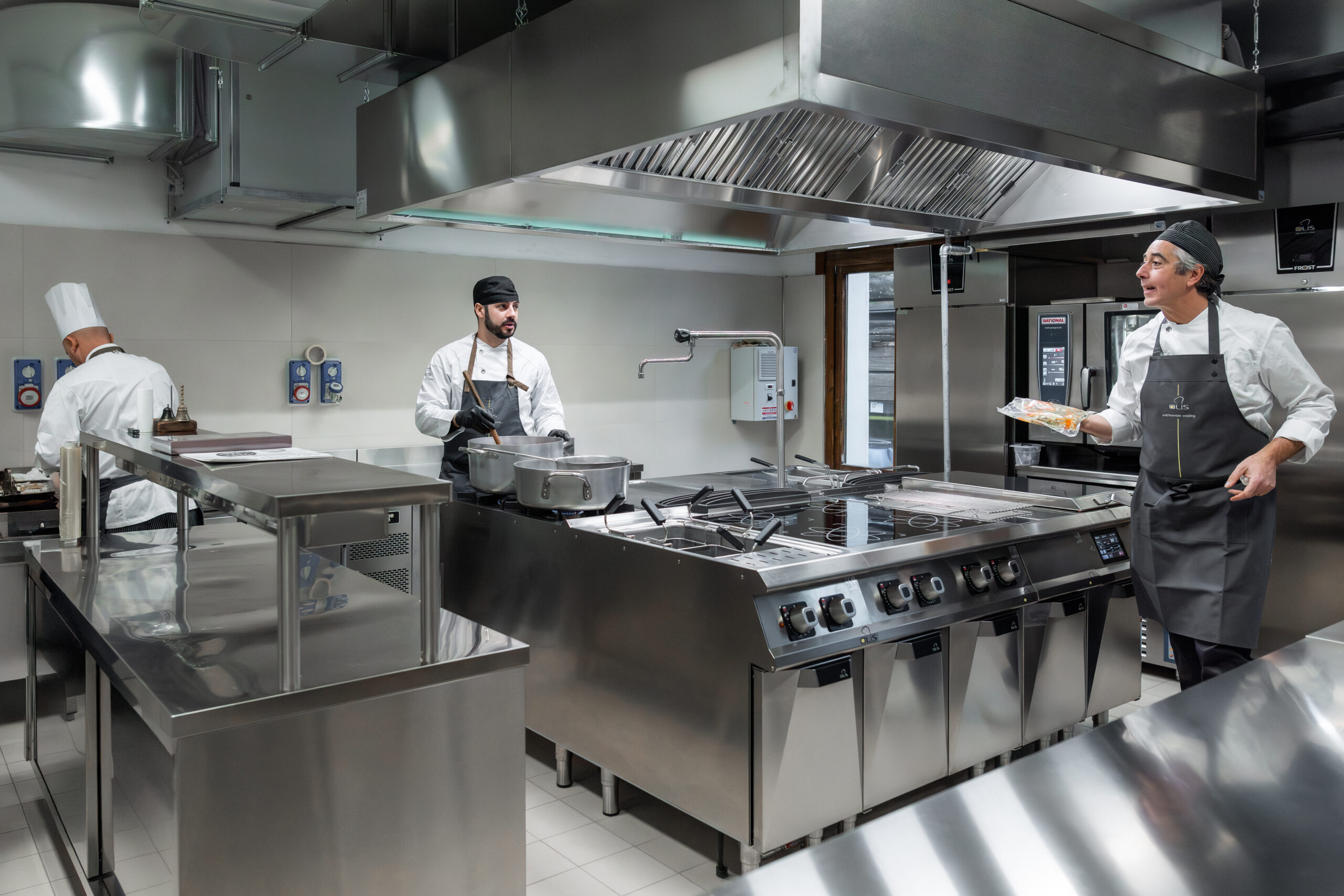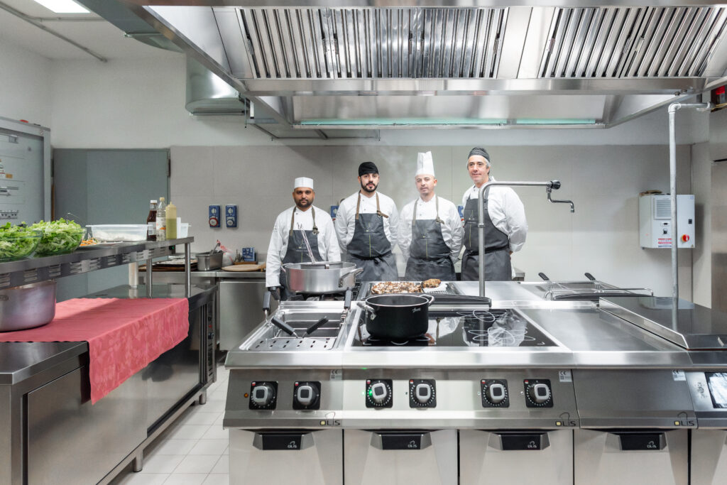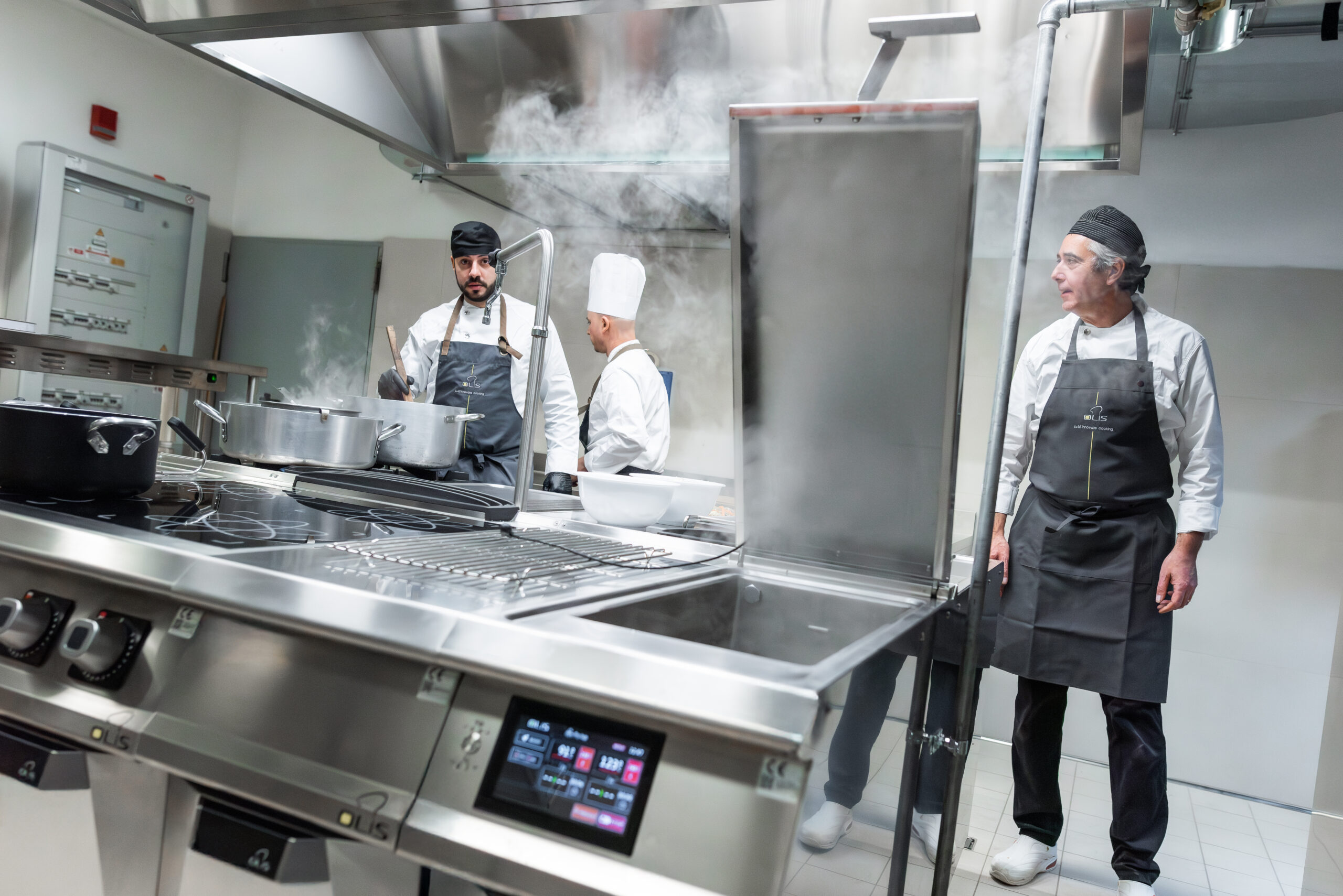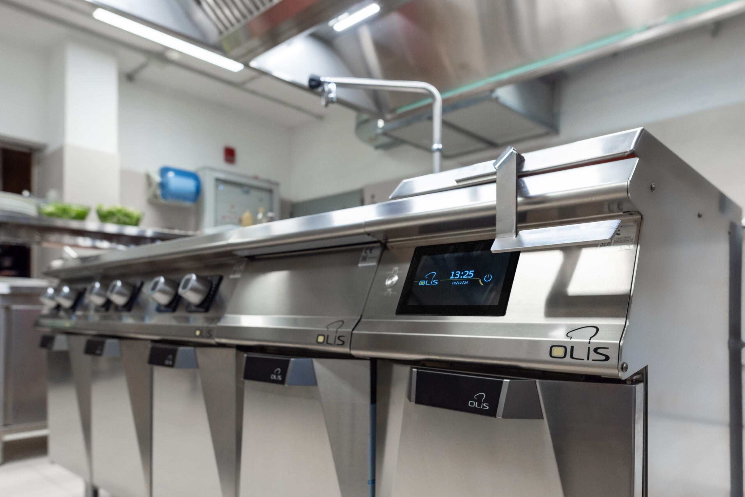 To face this new food and wine adventure, the choice fell on the reliability and innovation of Olis. The new kitchen system consists of a modular cooking block, a refrigeration system and the latest generation multifunction cooking center: the new FitPan.
