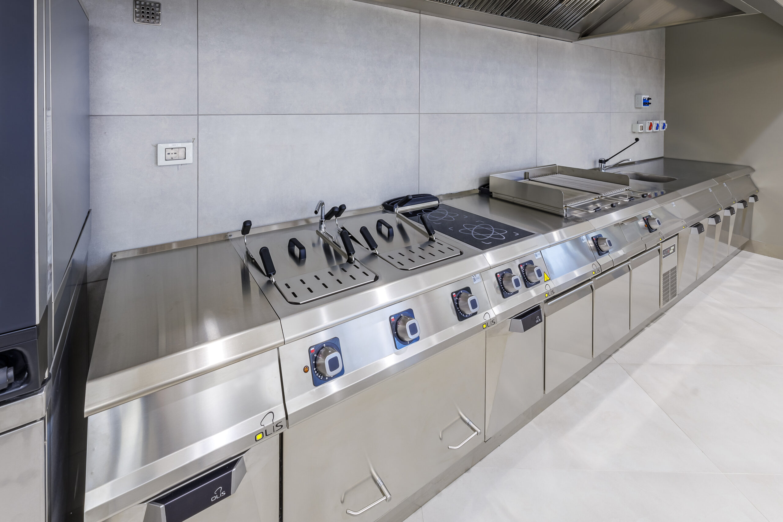 Modularità completa: includono friggitrici, forni, piani a induzione, fry top e cuocipasta, personalizzabili secondo le esigenze;