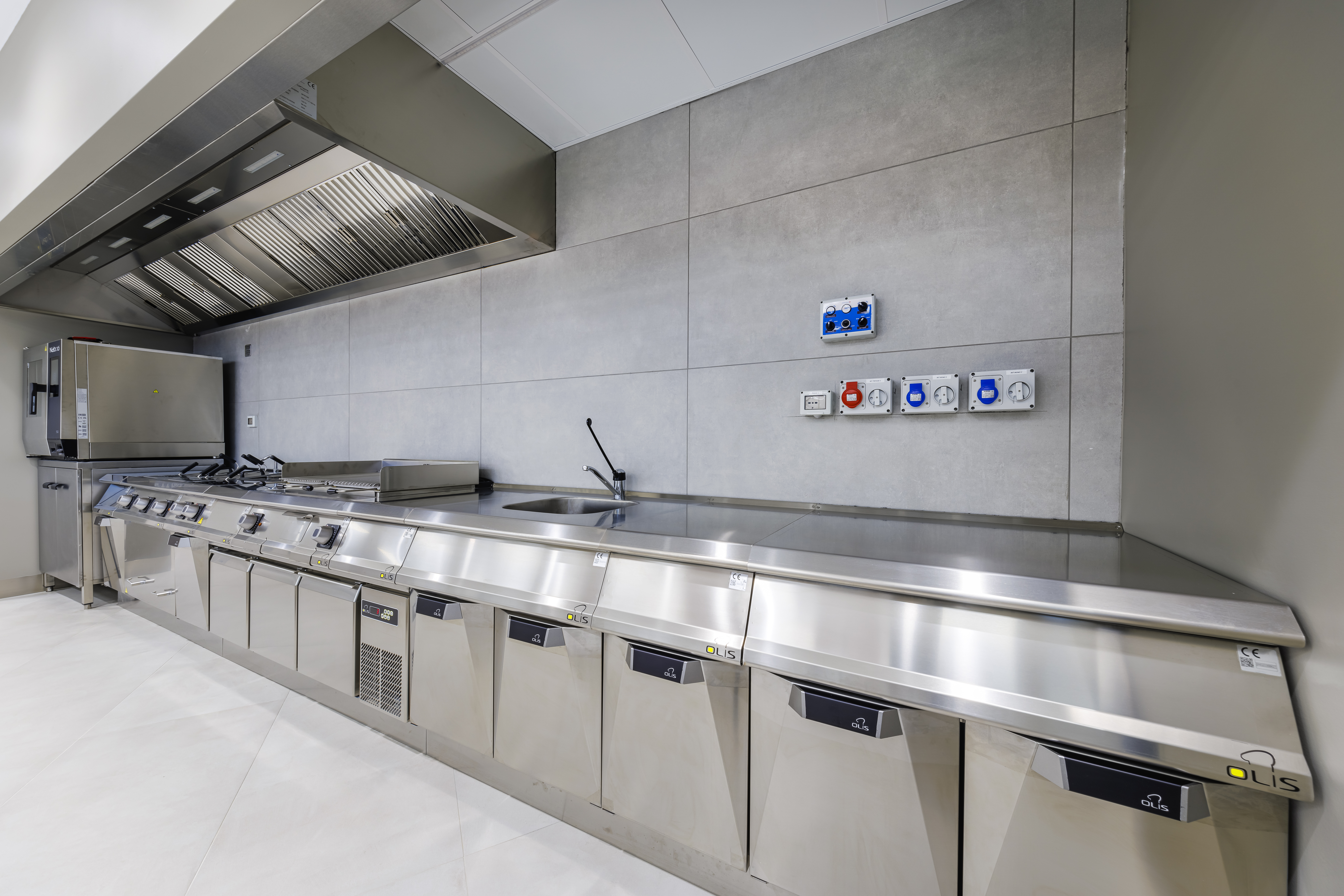 In questa struttura universitaria italiana, la progettazione del flusso di lavoro a garanzia delle differenti esigenze interne ha sviluppato due aree di cottura.