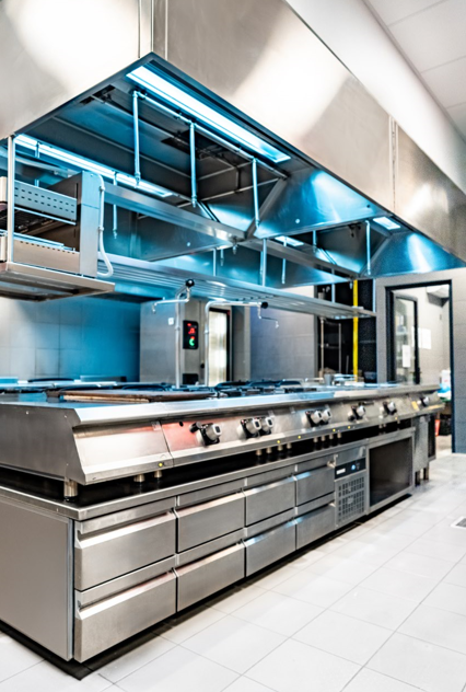 L’installazione comprende linee di cottura a gas progettate per assicurare potenza costante, modulazione precisa della fiamma e massima efficienza energetica.